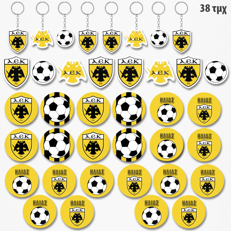Πακέτο δωράκια ΑΕΚ για πάρτυ ή Βάπτιση αποτελείται από 38 τεμάχια που θα φέρουν απόλυτη διασκέδαση και χαρά στους μικρούς σας φίλους.
