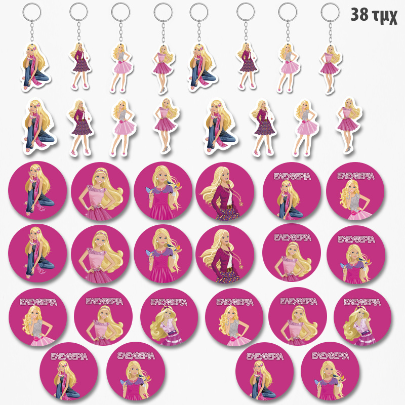 Πακέτο δωράκια Barbie για πάρτυ ή Βάπτιση αποτελείται από 38 τεμάχια που θα φέρουν απόλυτη διασκέδαση και χαρά στους μικρούς σας φίλους.