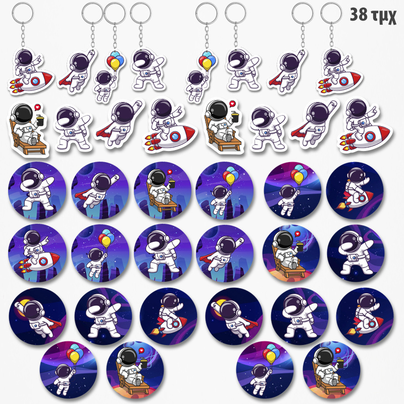 Πακέτο δωράκια Διάστημα για πάρτυ ή Βάπτιση αποτελείται από 38 τεμάχια που θα φέρουν απόλυτη διασκέδαση και χαρά στους μικρούς σας φίλους.
