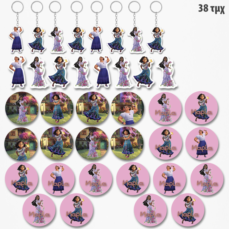 Πακέτο δωράκια Encanto για πάρτυ ή Βάπτιση αποτελείται από 38 τεμάχια που θα φέρουν απόλυτη διασκέδαση και χαρά στους μικρούς σας φίλους.