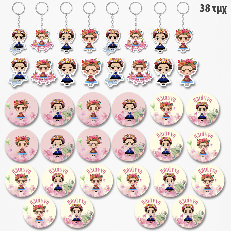 Πακέτο δωράκια Frida Kahlo για πάρτυ ή Βάπτιση αποτελείται από 38 τεμάχια που θα φέρουν απόλυτη διασκέδαση και χαρά στους μικρούς σας φίλους.
