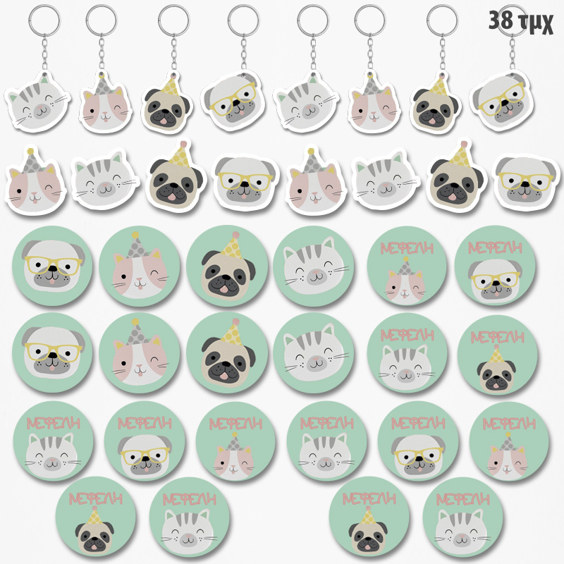 Πακέτο δωράκια Hello Pets για πάρτυ ή Βάπτιση αποτελείται από 38 τεμάχια που θα φέρουν απόλυτη διασκέδαση και χαρά στους μικρούς σας φίλους.