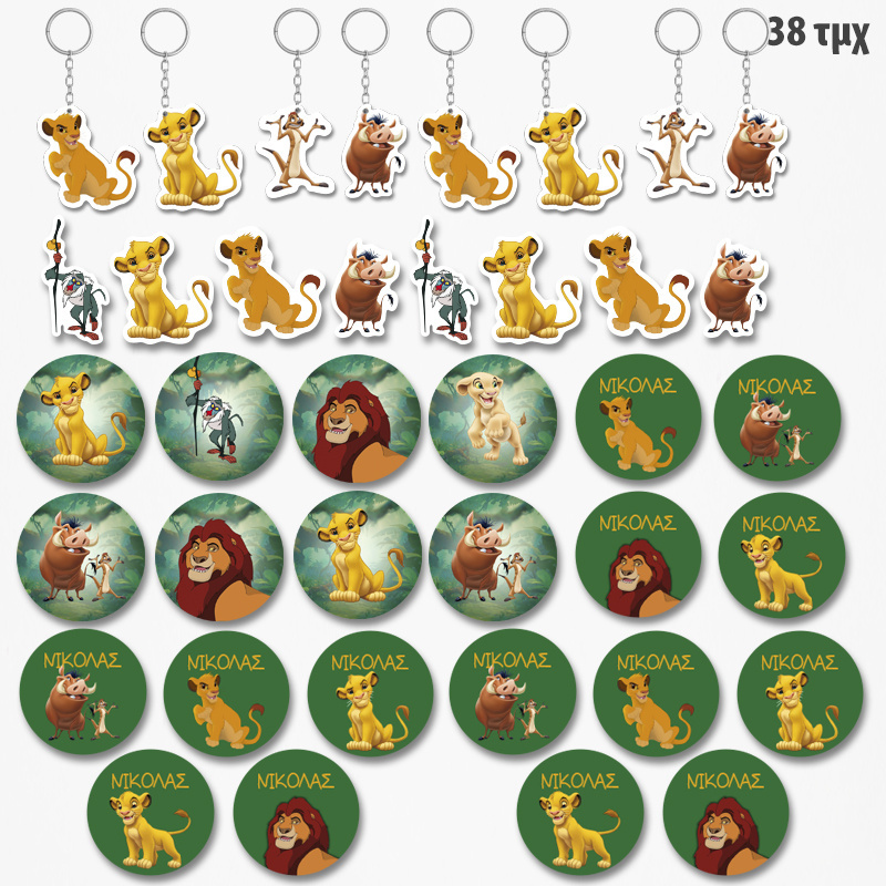 Πακέτο δωράκια Lion King για πάρτυ ή Βάπτιση αποτελείται από 38 τεμάχια που θα φέρουν απόλυτη διασκέδαση και χαρά στους μικρούς σας φίλους.