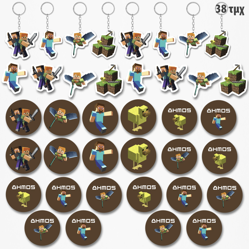 Πακέτο δωράκια Minecraft για πάρτυ ή Βάπτιση αποτελείται από 38 τεμάχια που θα φέρουν απόλυτη διασκέδαση και χαρά στους μικρούς σας φίλους.