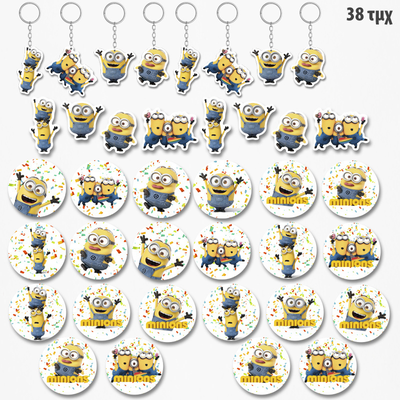 Πακέτο δωράκια Minions για πάρτυ ή Βάπτιση αποτελείται από 38 τεμάχια που θα φέρουν απόλυτη διασκέδαση και χαρά στους μικρούς σας φίλους.