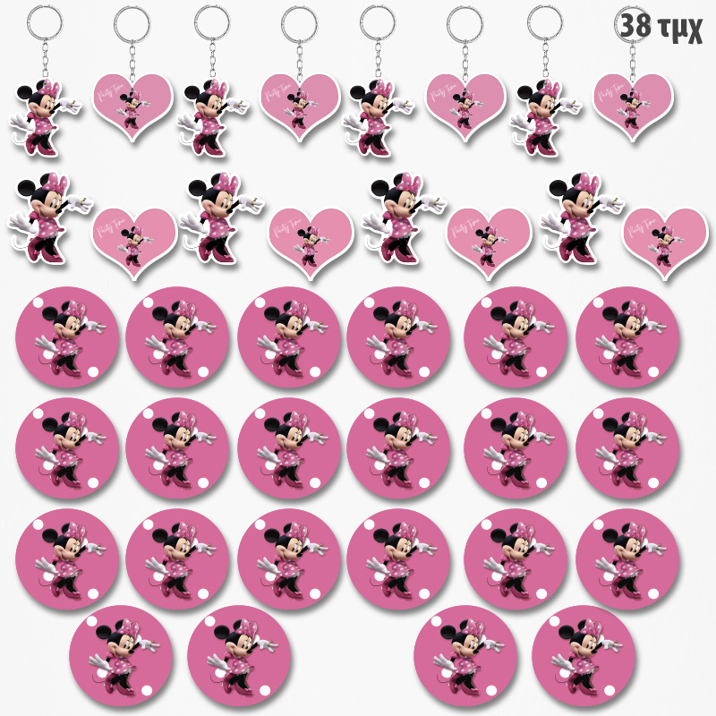Πακέτο δωράκια Minnie για πάρτυ ή Βάπτιση αποτελείται από 38 τεμάχια που θα φέρουν απόλυτη διασκέδαση και χαρά στους μικρούς σας φίλους.