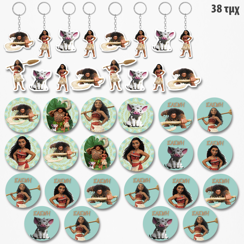 Πακέτο δωράκια Moana για πάρτυ ή Βάπτιση αποτελείται από 38 τεμάχια που θα φέρουν απόλυτη διασκέδαση και χαρά στους μικρούς σας φίλους.