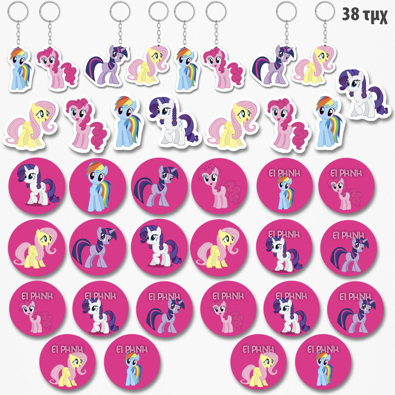 Πακέτο δωράκια My Little Pony για πάρτυ ή Βάπτιση αποτελείται από 38 τεμάχια που θα φέρουν απόλυτη διασκέδαση και χαρά στους μικρούς σας φίλους.