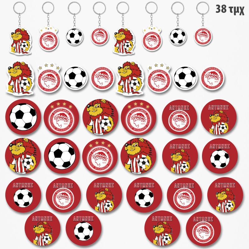 Πακέτο δωράκια Ολυμπιακός για πάρτυ ή Βάπτιση αποτελείται από 38 τεμάχια που θα φέρουν απόλυτη διασκέδαση και χαρά στους μικρούς σας φίλους.