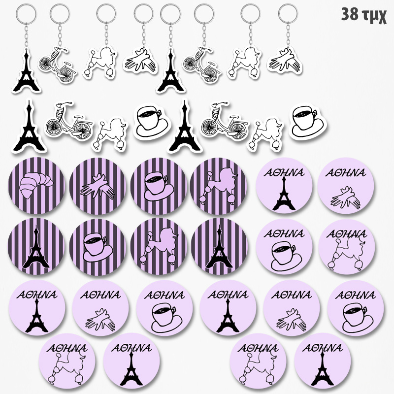 Πακέτο δωράκια Paris για πάρτυ ή Βάπτιση αποτελείται από 38 τεμάχια που θα φέρουν απόλυτη διασκέδαση και χαρά στους μικρούς σας φίλους.
