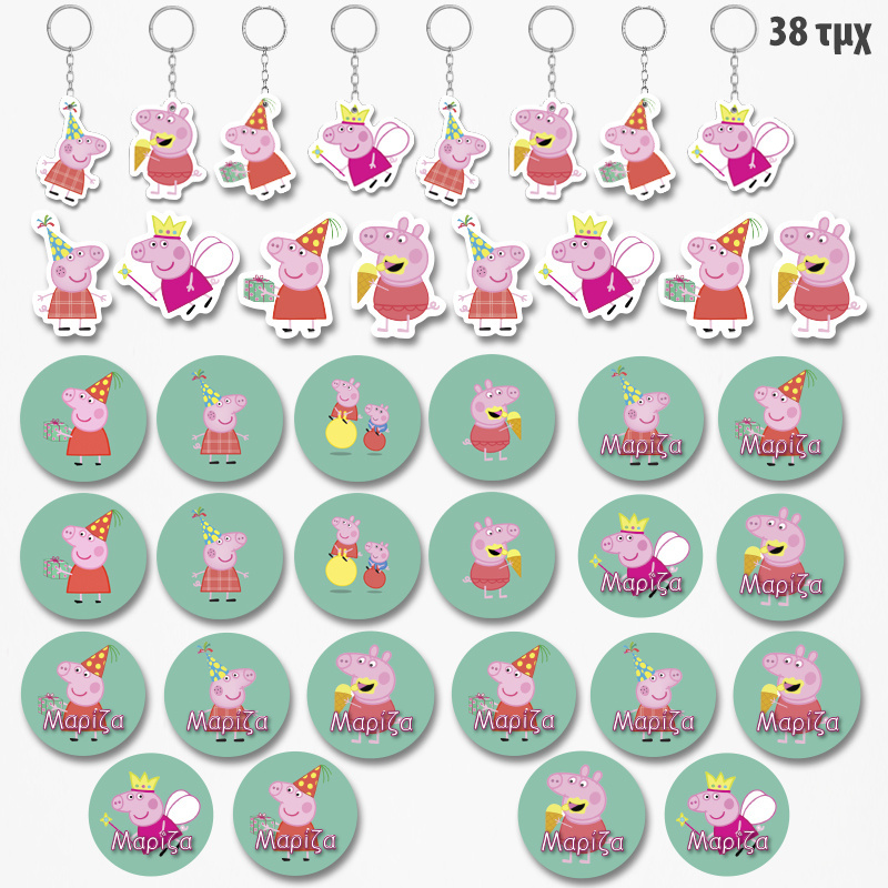 Πακέτο δωράκια Peppa για πάρτυ ή Βάπτιση αποτελείται από 38 τεμάχια που θα φέρουν απόλυτη διασκέδαση και χαρά στους μικρούς σας φίλους.
