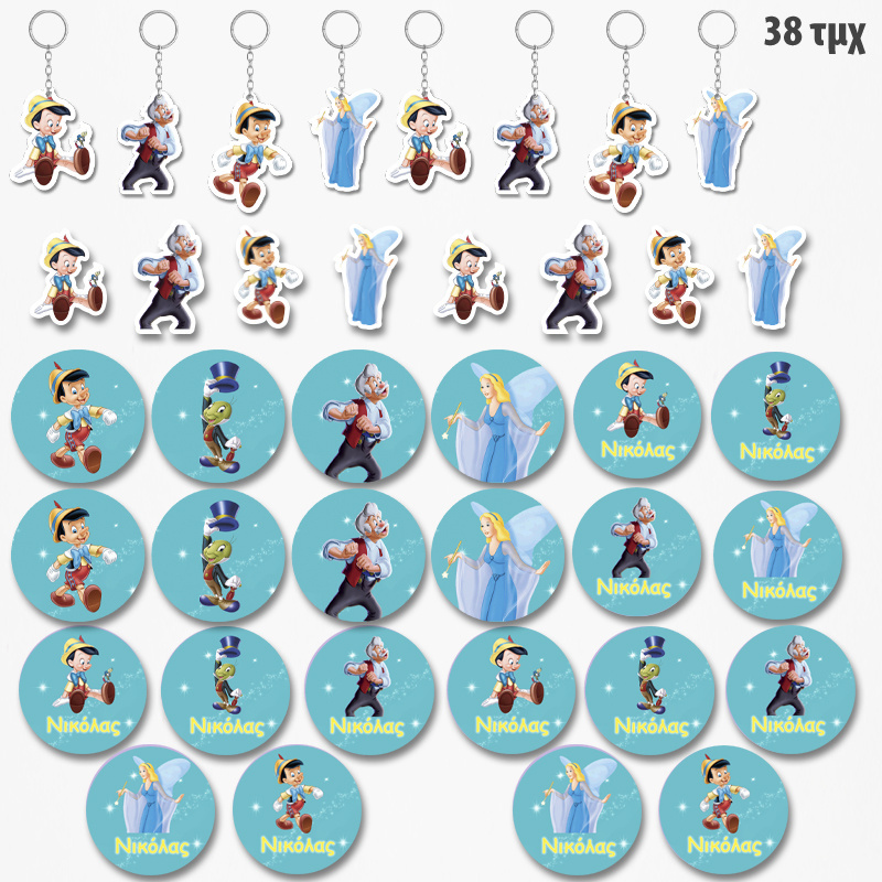 Πακέτο δωράκια Πινόκιο για πάρτυ ή Βάπτιση αποτελείται από 38 τεμάχια που θα φέρουν απόλυτη διασκέδαση και χαρά στους μικρούς σας φίλους.