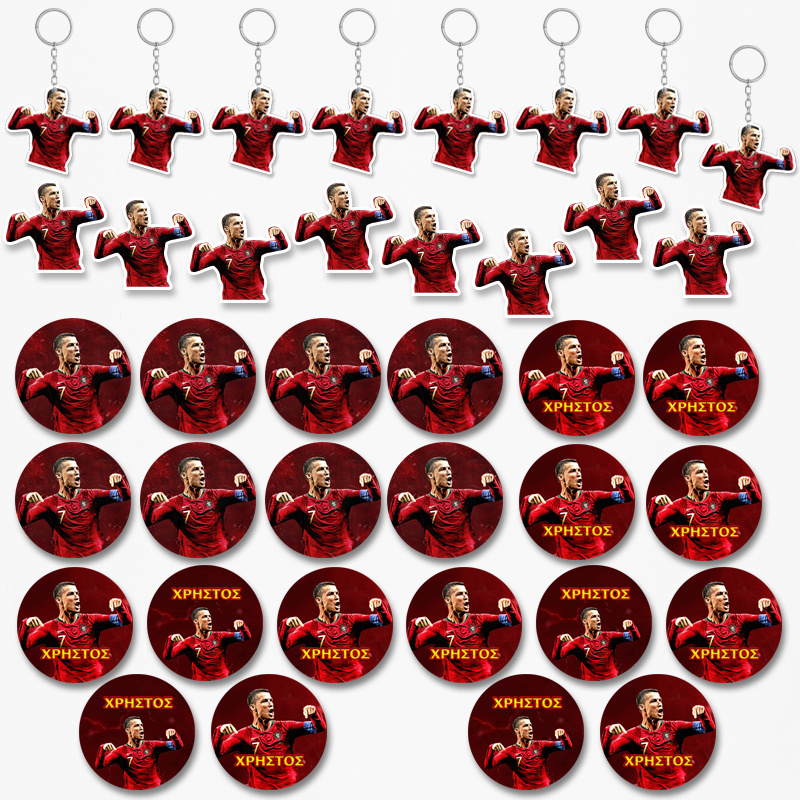 Πακέτο δωράκια Ronaldo για πάρτυ ή Βάπτιση αποτελείται από 38 τεμάχια που θα φέρουν απόλυτη διασκέδαση και χαρά στους μικρούς σας φίλους.