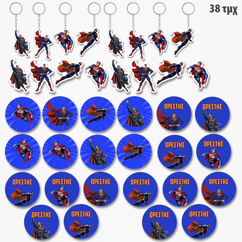 Πακέτο δωράκια Superman για πάρτυ ή Βάπτιση αποτελείται από 38 τεμάχια που θα φέρουν απόλυτη διασκέδαση και χαρά στους μικρούς σας φίλους.