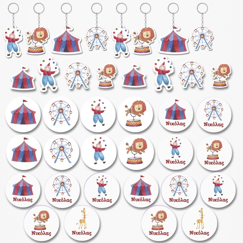 Πακέτο δωράκια Τσίρκο για πάρτυ ή Βάπτιση αποτελείται από 38 τεμάχια που θα φέρουν απόλυτη διασκέδαση και χαρά στους μικρούς σας φίλους.