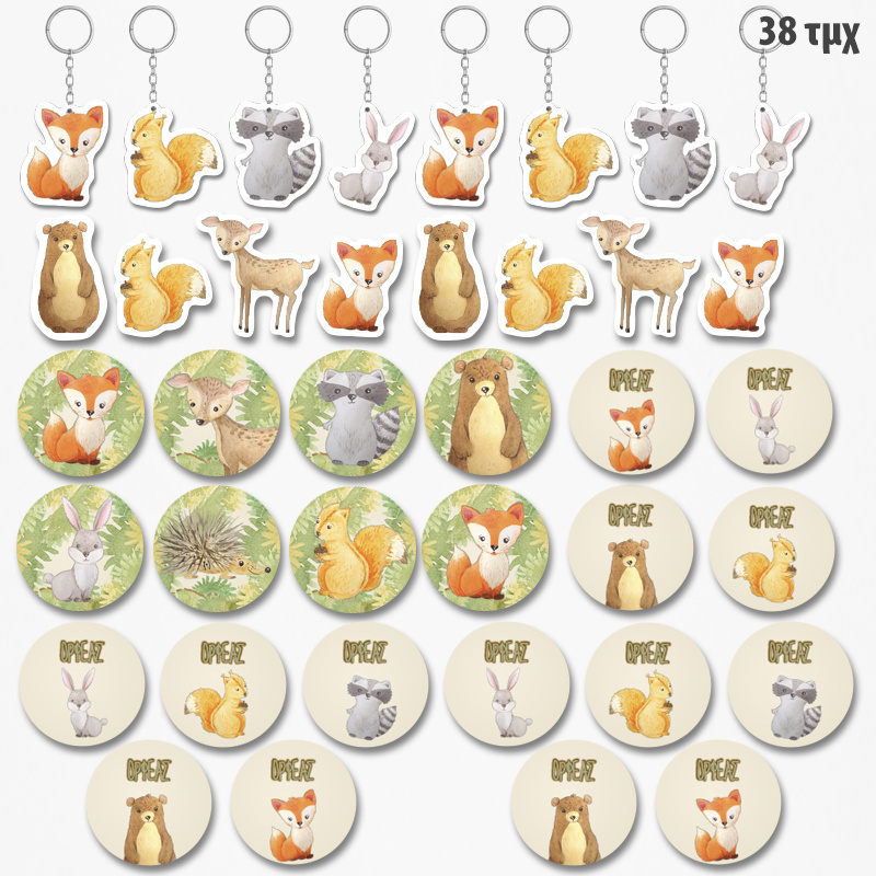 Πακέτο δωράκια Ζωάκια Δάσους για πάρτυ ή Βάπτιση αποτελείται από 38 τεμάχια που θα φέρουν απόλυτη διασκέδαση και χαρά στους μικρούς σας φίλους.