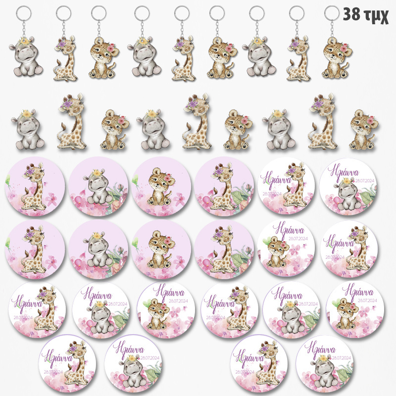 Πακέτο δωράκια Ζωάκια ζούγκλας Κορίτσι για πάρτυ ή Βάπτιση αποτελείται από 38 τεμάχια που θα φέρουν απόλυτη διασκέδαση και χαρά στους μικρούς σας φίλους.