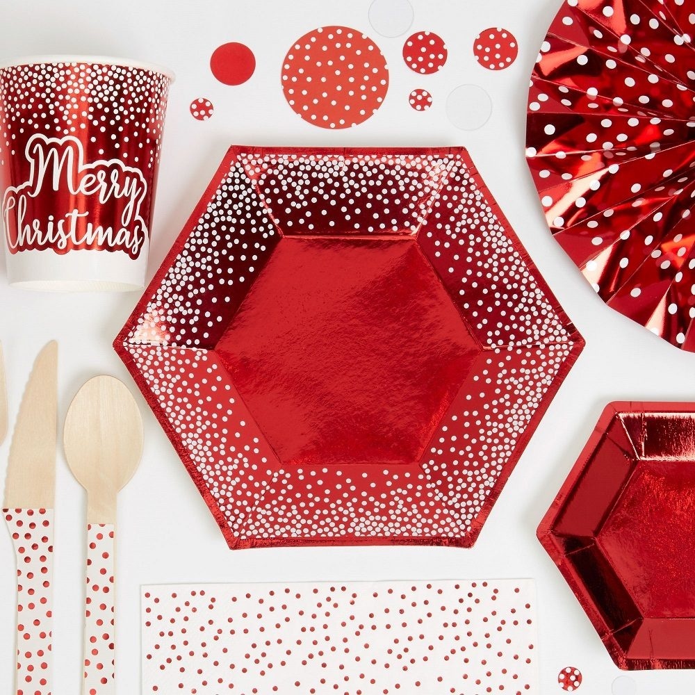 Πιάτα χαρτ.20εκ Κόκκινα με Λευκά Πουα /8 τεμ