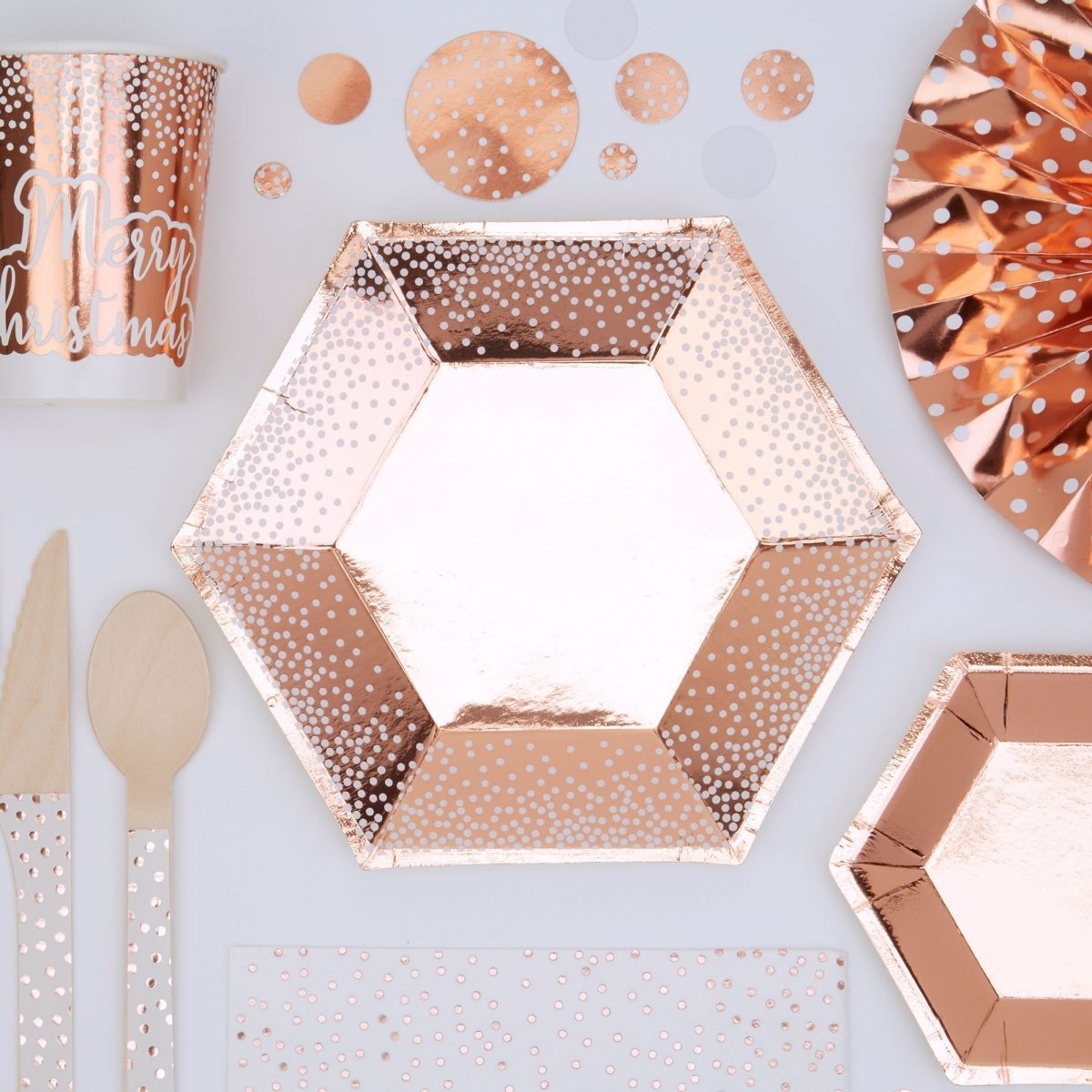 Πιάτα χαρτ.20εκ Ροζ Χρυσό με Λευκά Πουα /8 τεμRose Gold