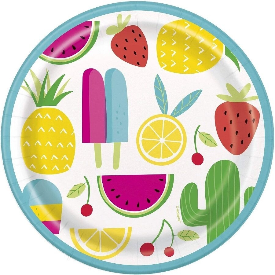 Πιάτα Χάρτινα Γλυκού 18εκ.με Φρούτα / 8 τεμ.