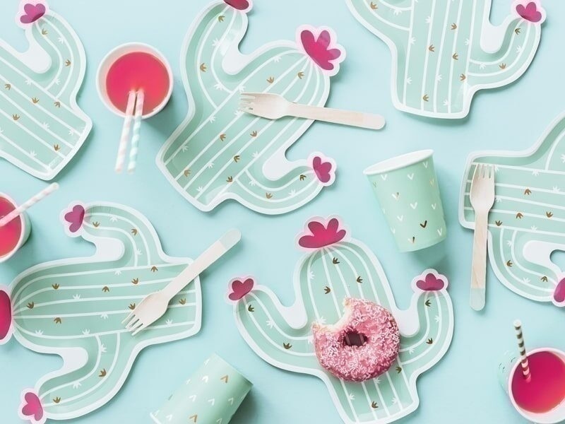 Πιάτα χάρτινα σε σχήμα Κάκτου με ανάμικτα χρώματα. Κάθε πακέτο περιέχει 6 τεμ. μεγέθους 23×24 εκ.