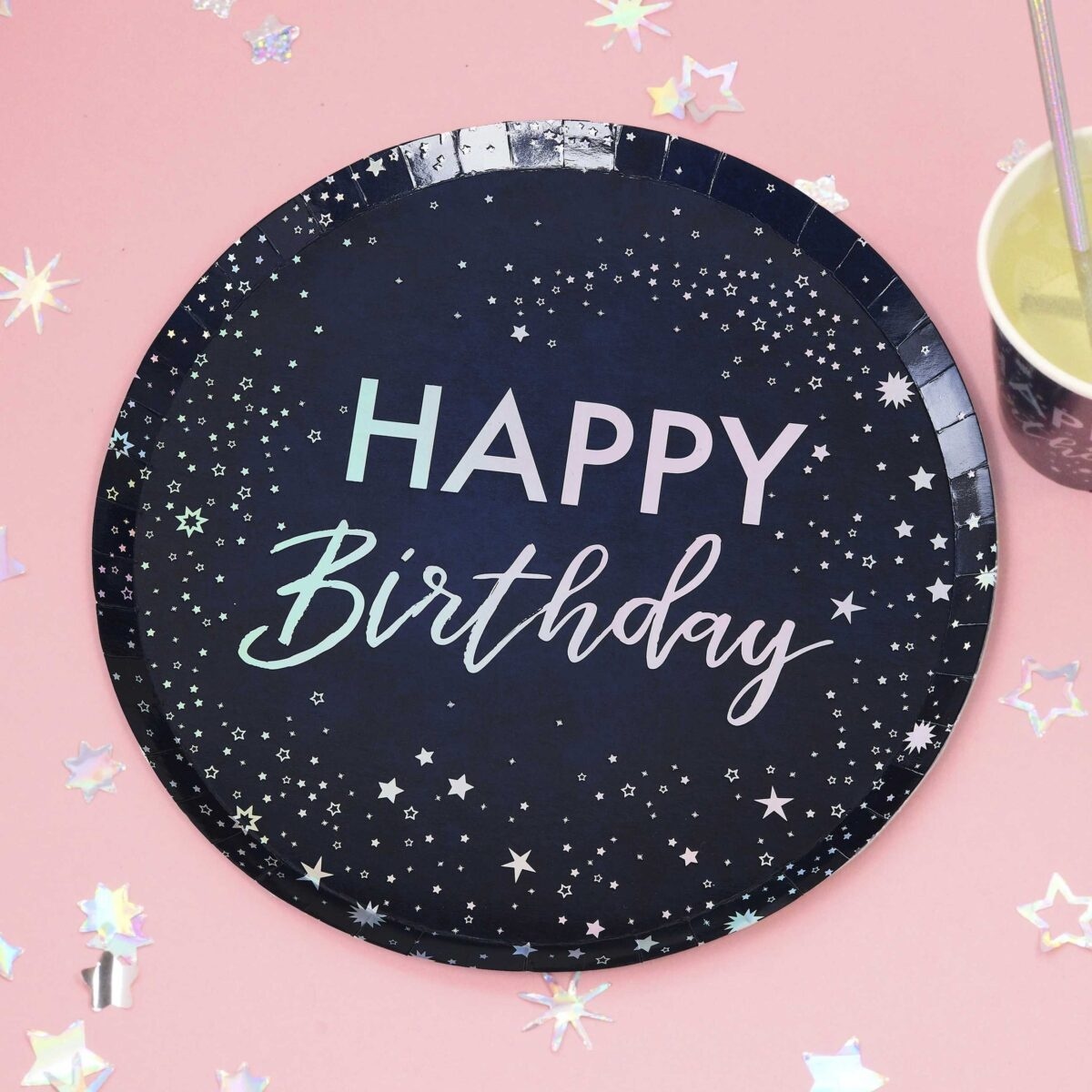 Πιάτα 23εκ. ιριδίζοντα Happy Birthday