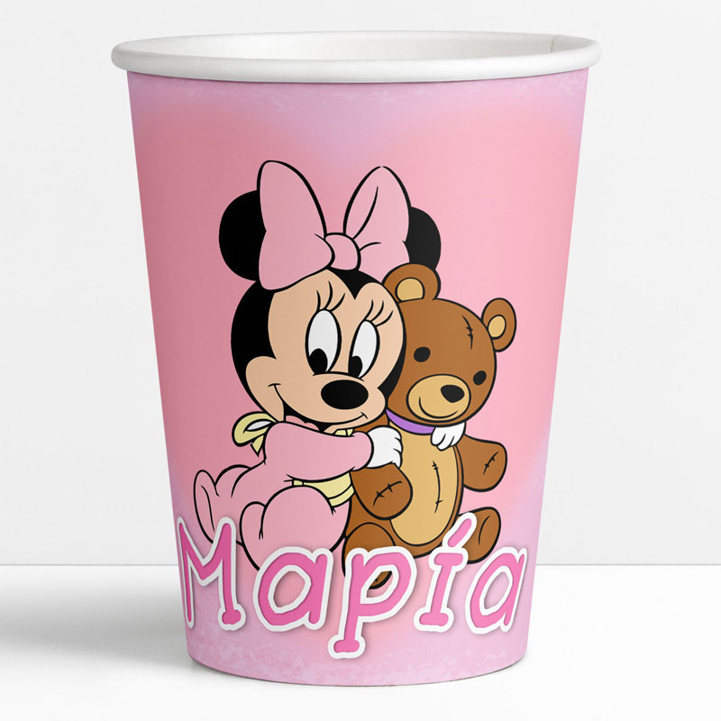 Θεματικά χάρτινα ποτηράκια Μinnie με όνομα. Η μικρή σας θα τρελαθεί.