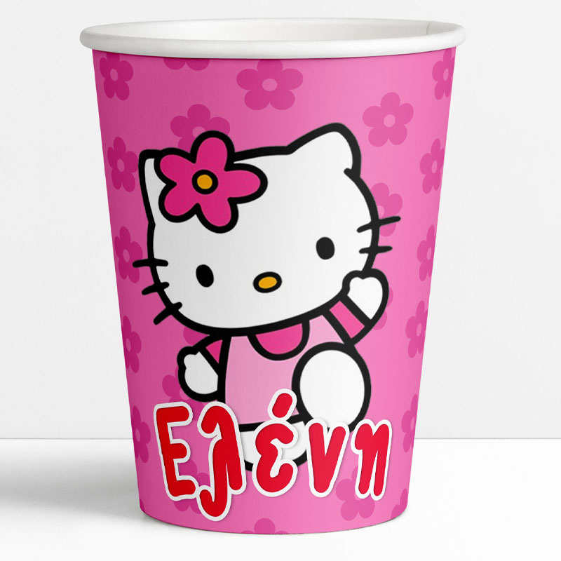 Θεματικά χάρτινα ποτηράκια Hello Kitty με όνομα. Η μικρή σας θα τρελαθεί.