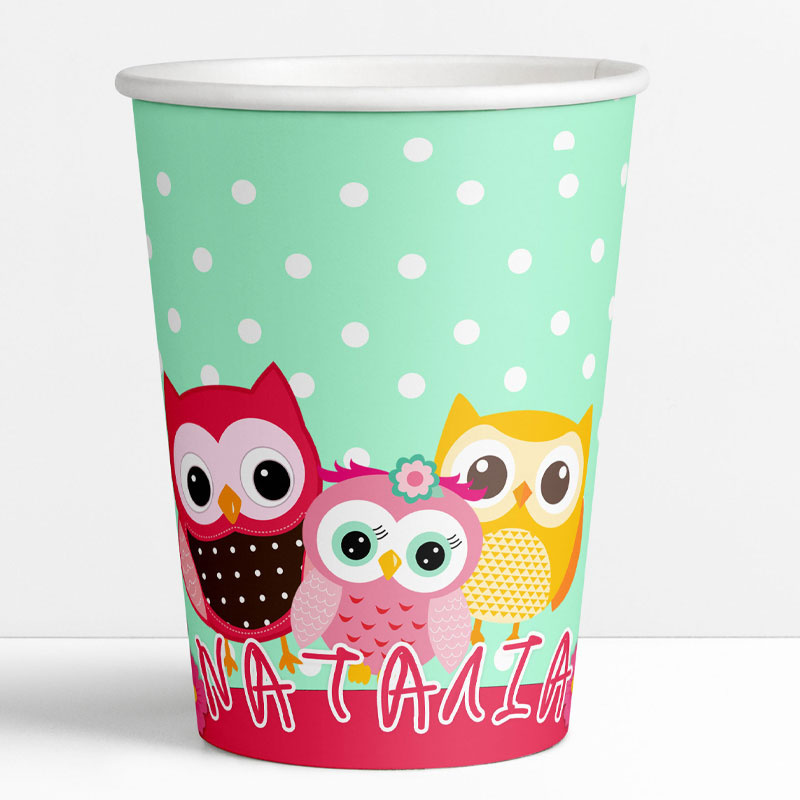 Θεματικά χάρτινα ποτηράκια Κουκουβάγια με όνομα. Η μικρή σας θα ενθουσιαστεί!