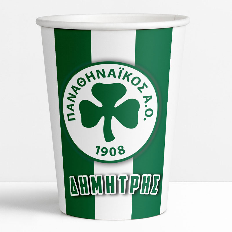 Θεματικά χάρτινα ποτηράκια με όνομα, με θέμα την αγαπημένη σας ομάδα. Τα μικρά παιδιά θα ενθουσιαστούν!