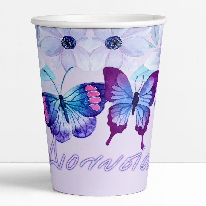Θεματικά χάρτινα ποτηράκια Πεταλούδα με όνομα. Η μικρή σας θα ενθουσιαστεί!