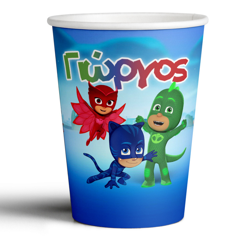 Θεματικά ποτηράκια PJ Masks με όνομα για το παιδικό σας πάρτυ!