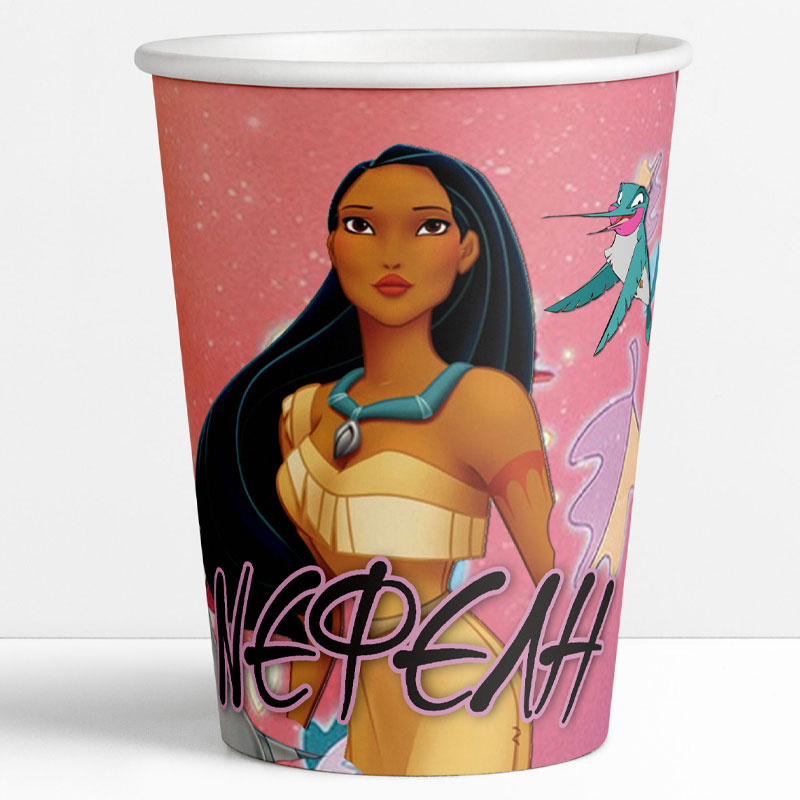 Θεματικά χάρτινα ποτηράκια Pocahontas με όνομα. Η μικρή σας θα τρελαθεί.