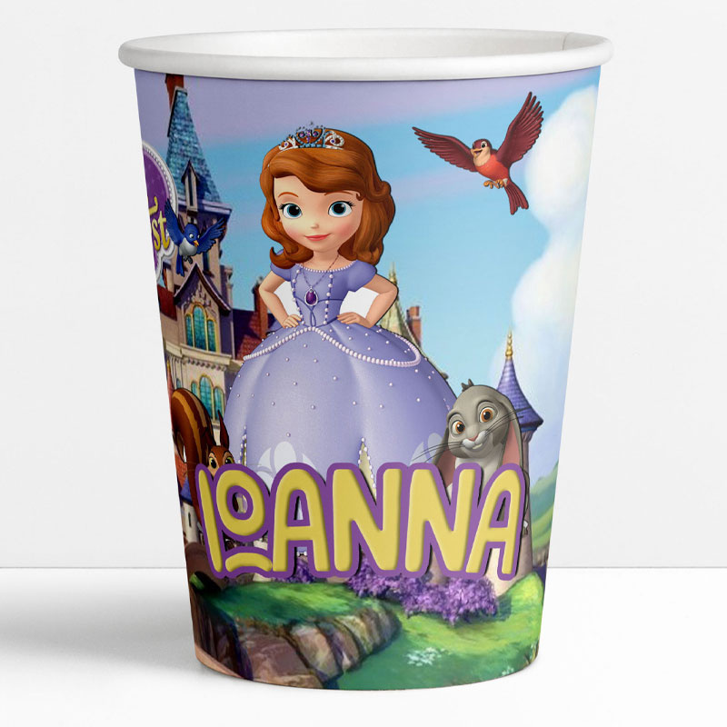 Θεματικά χάρτινα ποτηράκια Πριγκίπισσα Σοφία με όνομα.