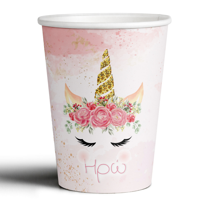 Θεματικά χάρτινα ποτηράκια Unicorn με όνομα. Ο αγαπημένος μονόκερος θα ξετρελάνει τα κορίτσια σας.