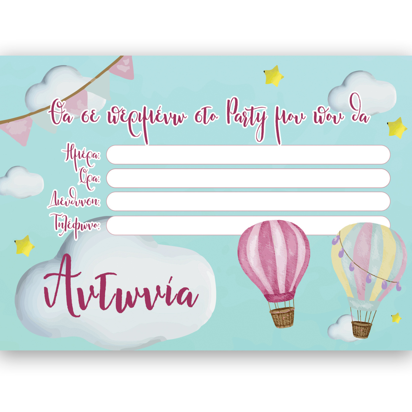 Κάλεσε τους αγαπημένους σου φίλους στο πάρτυ που ετοιμάζεις με χειροποίητες θεματικές προσκλήσεις Αερόστατο!