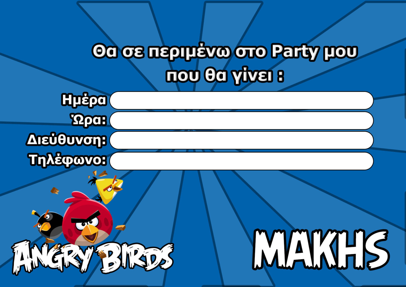 Προσκλήσεις με όνομα με τους αγαπημένα σας Angry Birds!