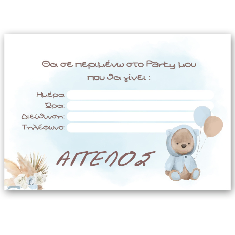 Κάλεσε τους αγαπημένους σου φίλους στο πάρτυ που ετοιμάζεις με χειροποίητες θεματικές προσκλήσεις Αρκουδάκι για Αγόρι!