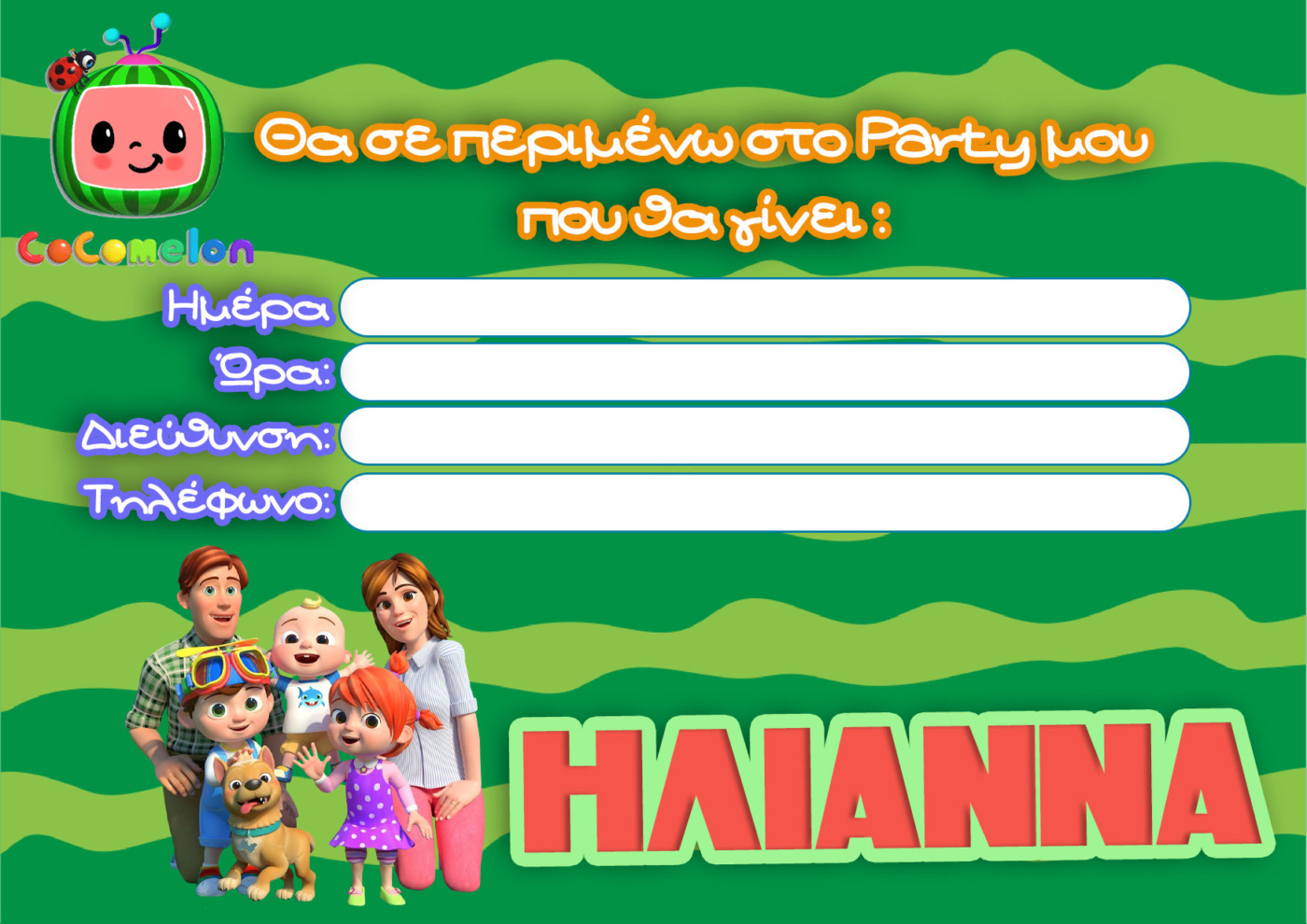 Kάλεσε τους αγαπημένους σου στο πάρτυ με θεματικές προσκλήσεις Cocomelon!