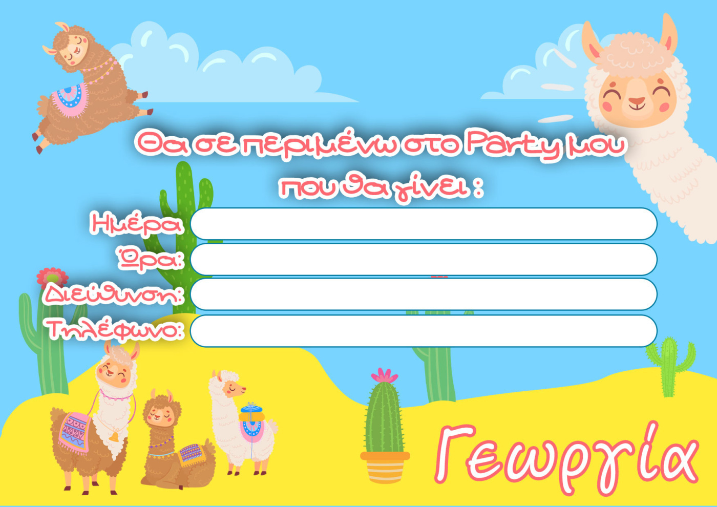 Kάλεσε τους αγαπημένους σου στο πάρτυ Λάμα που ετοιμάζεις!