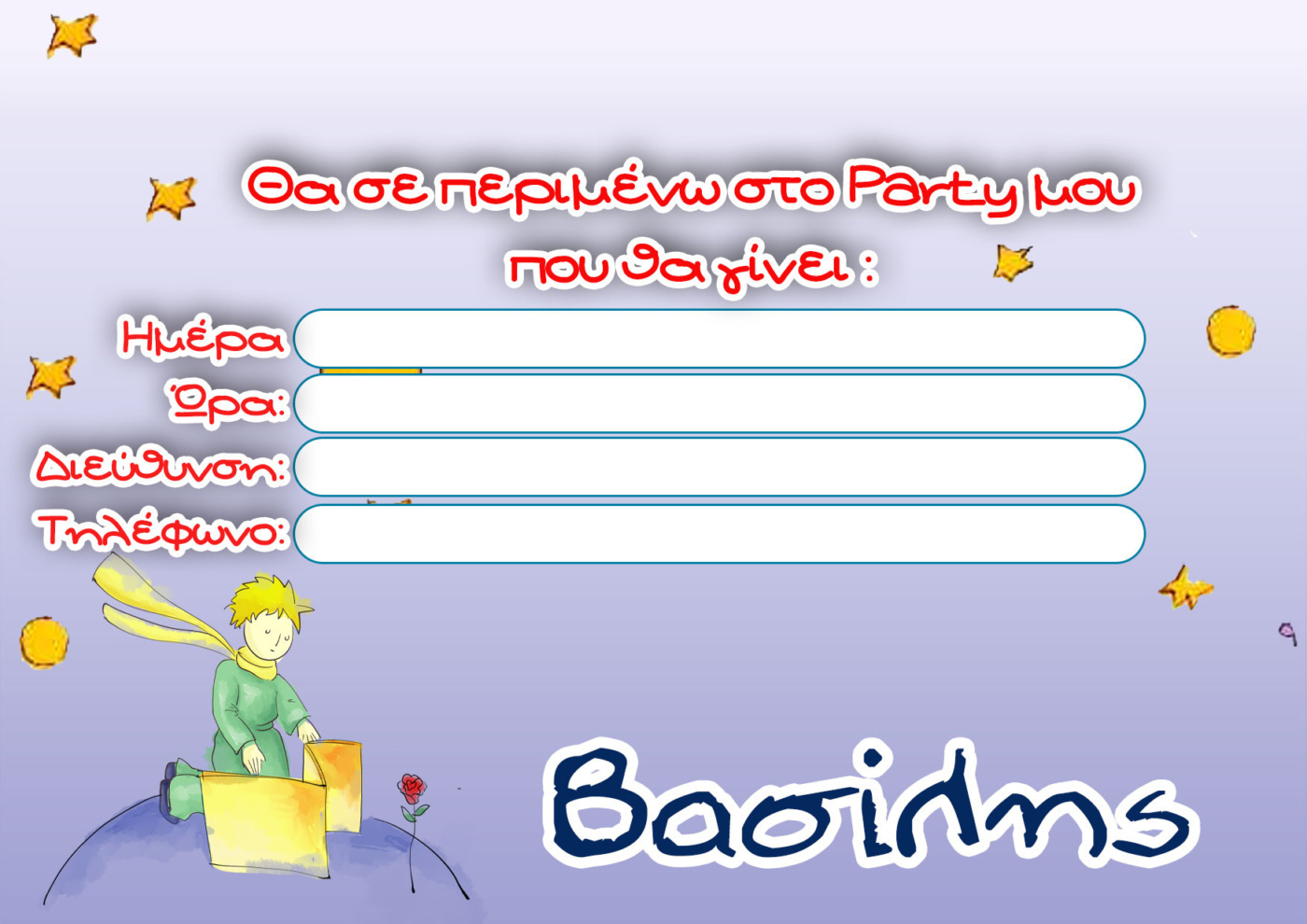 Θεματικές προσκλήσεις με όνομα με τον Μικρό Πρίγκιπα!