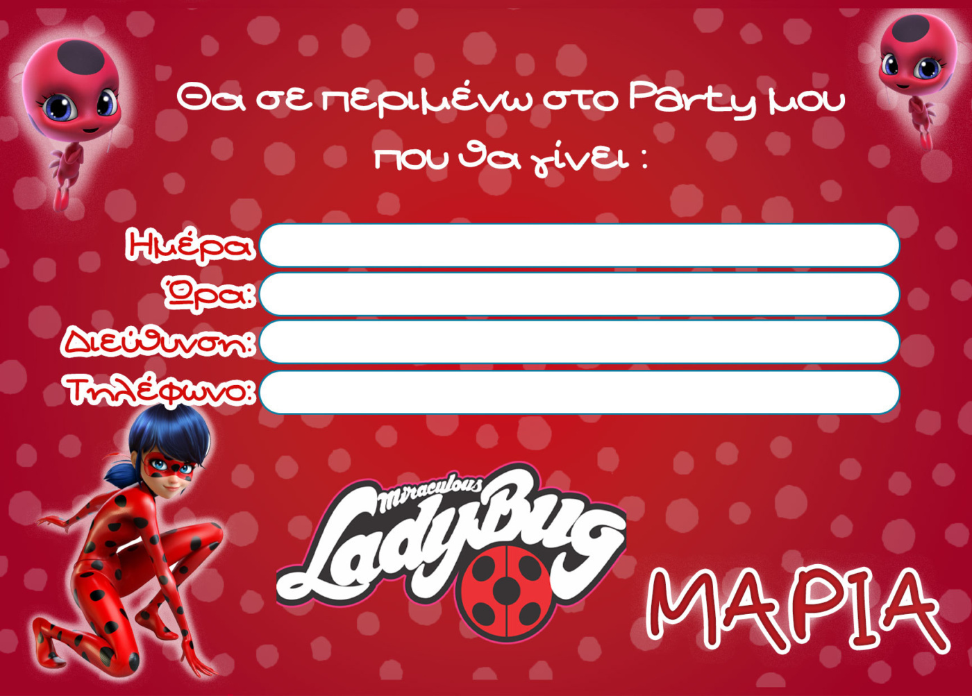 Kάλεσε τις φίλες σου στο πάρτυ με θεματικές προσκλήσεις Miraculous LadyBug!