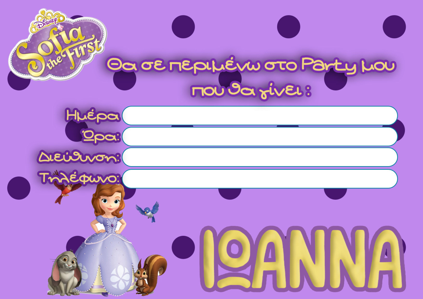 Kάλεσε τις φίλες σου στο πάρτυ με θεματικές προσκλήσεις Πριγκίπισσα Σοφία!