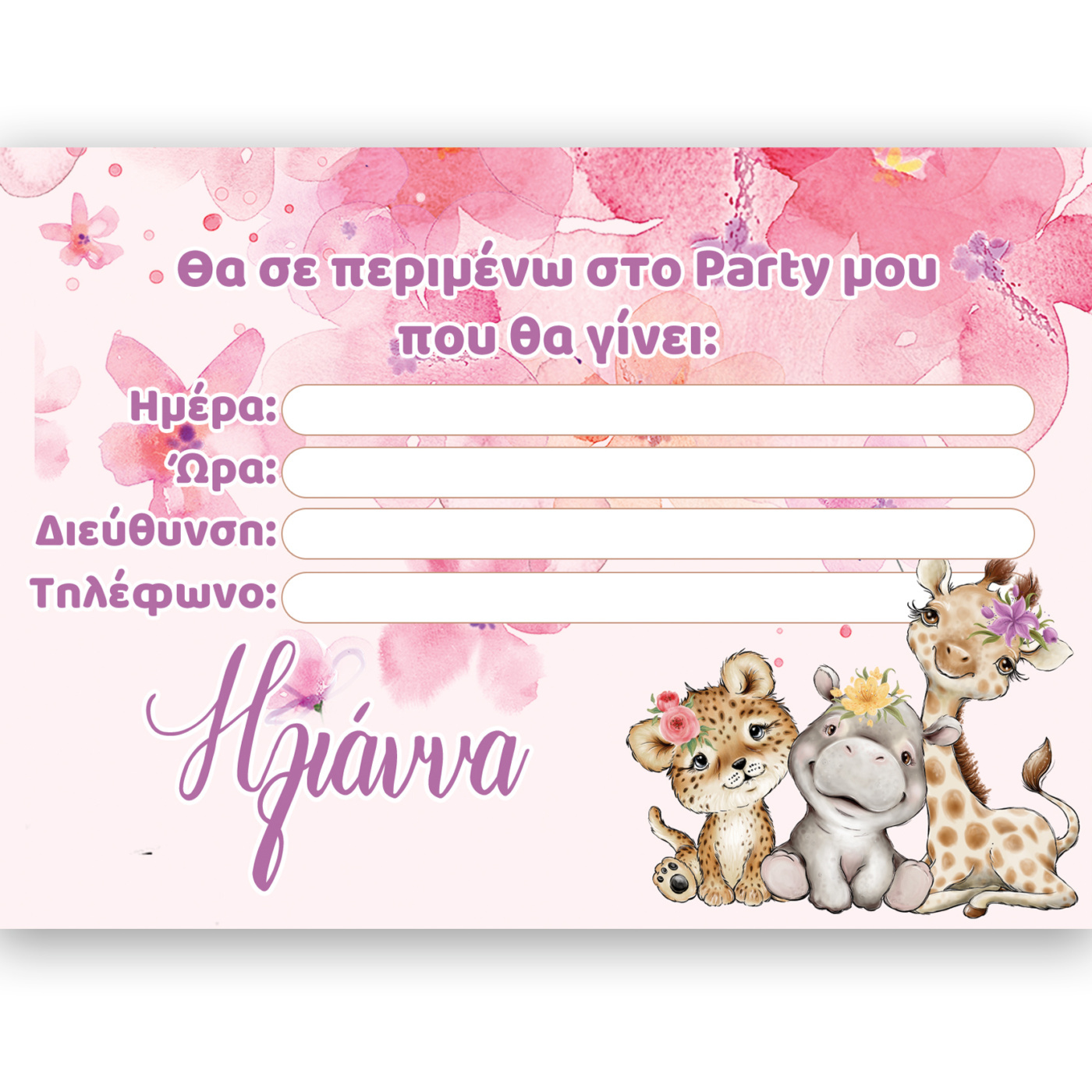 Κάλεσε τους αγαπημένους σου φίλους στο πάρτυ που ετοιμάζεις με χειροποίητες θεματικές προσκλήσεις Ζωάκια ζούγκλας κορίτσι!