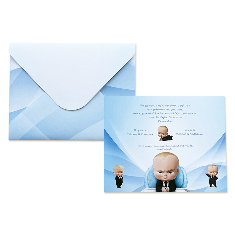 Προσκλητήριο βάπτισης Baby Boss, με εκτυπωμένο φάκελο.