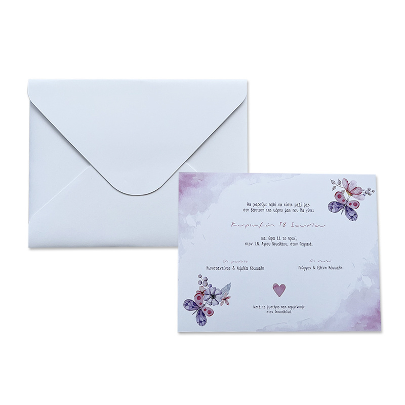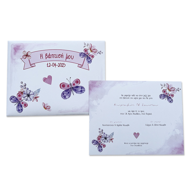 Προσκλητήριο βάπτισης Butterfly, με εκτυπωμένο φάκελο.