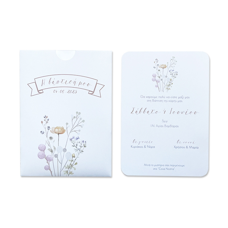 - Διαστάσεις προσκλητηρίου 18*13 cm