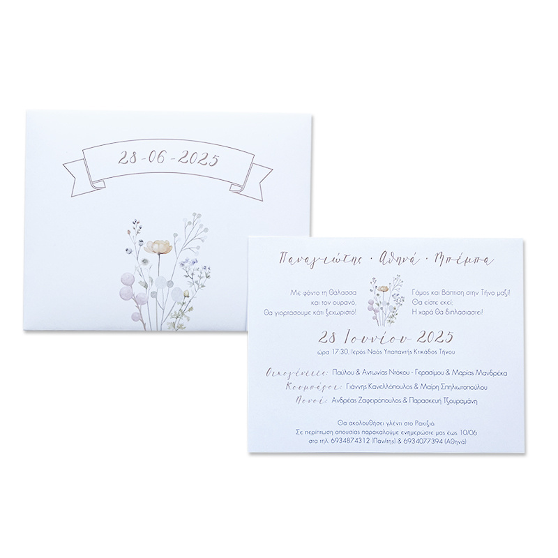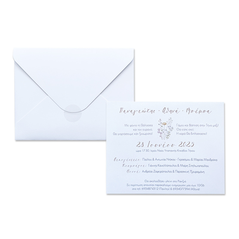 Προσκλητήριο βάπτισης Floral Pastel, με εκτυπωμένο φάκελο.