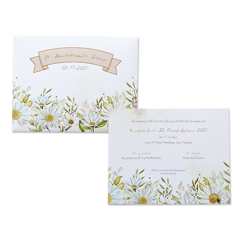 Προσκλητήριο βάπτισης Μαργαρίτα, με εκτυπωμένο φάκελο.