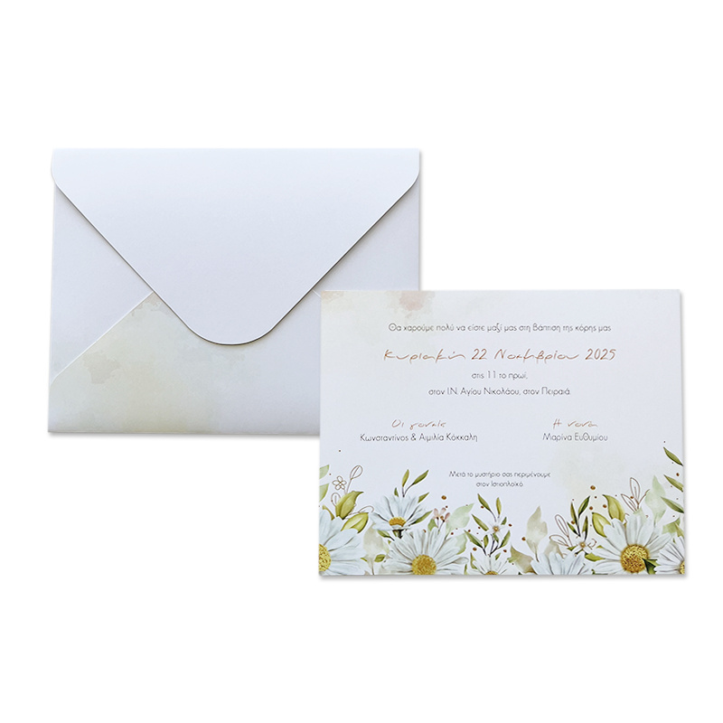 Προσκλητήριο Βάπτισης Μαργαρίτα με φάκελο